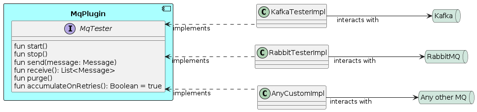 MqPlugin enables to set up and verify the state of some message queue. A message queue is represented as an implementation of the io.github.adven27.concordion.extensions.exam.mq.MqTester interface and that implementation is responsible for interacting with that specific queue.